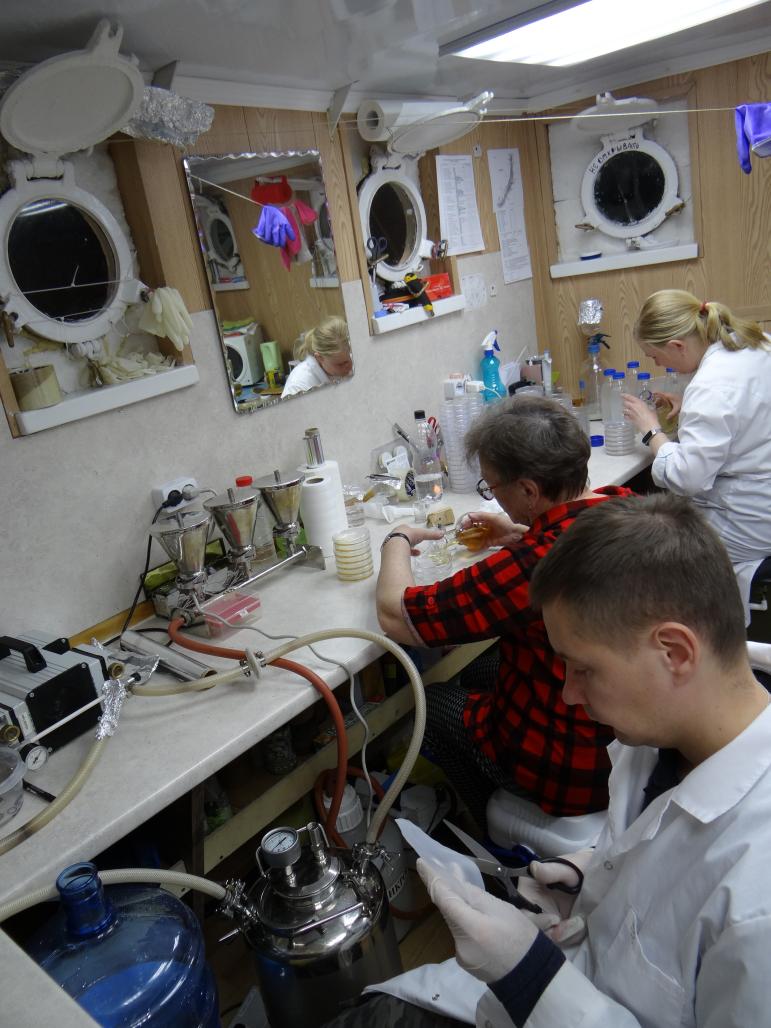 Integrated fieldwork was done during June 01-14, 2021 over the whole Lake Baikal on board of the RV “G.Yu. Vereshchagin”. The work was fulfilled within the State Assignments: 0279 2021 0005 “Study of seasonal and long-term transformations of East Siberian water bodies and water flows in the context of the climate change, geological environment and anthropogenic stress” (directed by Andrey Fedotov); 0279 2021 0004 “Study of advection and turbulence in Baikal water exchange, their impact on the ecosystem of the lake and risks of catastrophic events” (directed by Nikolay Granin); 0279 2021 0008 “From cell to ecosystem: Study of ultrastructure of aquatic organisms and their communities from evolutionary and ecological points of view by methods of cell biology and genomics” (directed by Elena Likhoshway); 0279 2021 0014 “Study of role of precipitations in aquatic and terrestrial ecosystems of the Lake Baikal catchment area, identification of sources of air pollutants” (directed by Tamara Khodzher), 0279 2019 0003 “Ecological and economical assessment of functioning of freshwater biocoenoses from fundamental and applied points of view” (directed by Mikhail Makarov), and 0279 2021 0015 “Study of viral and bacterial communities as a basis for stable functioning of freshwater ecosystems and effective response under the anthropogenic stress” (directed by Dr. Olga Belykh).