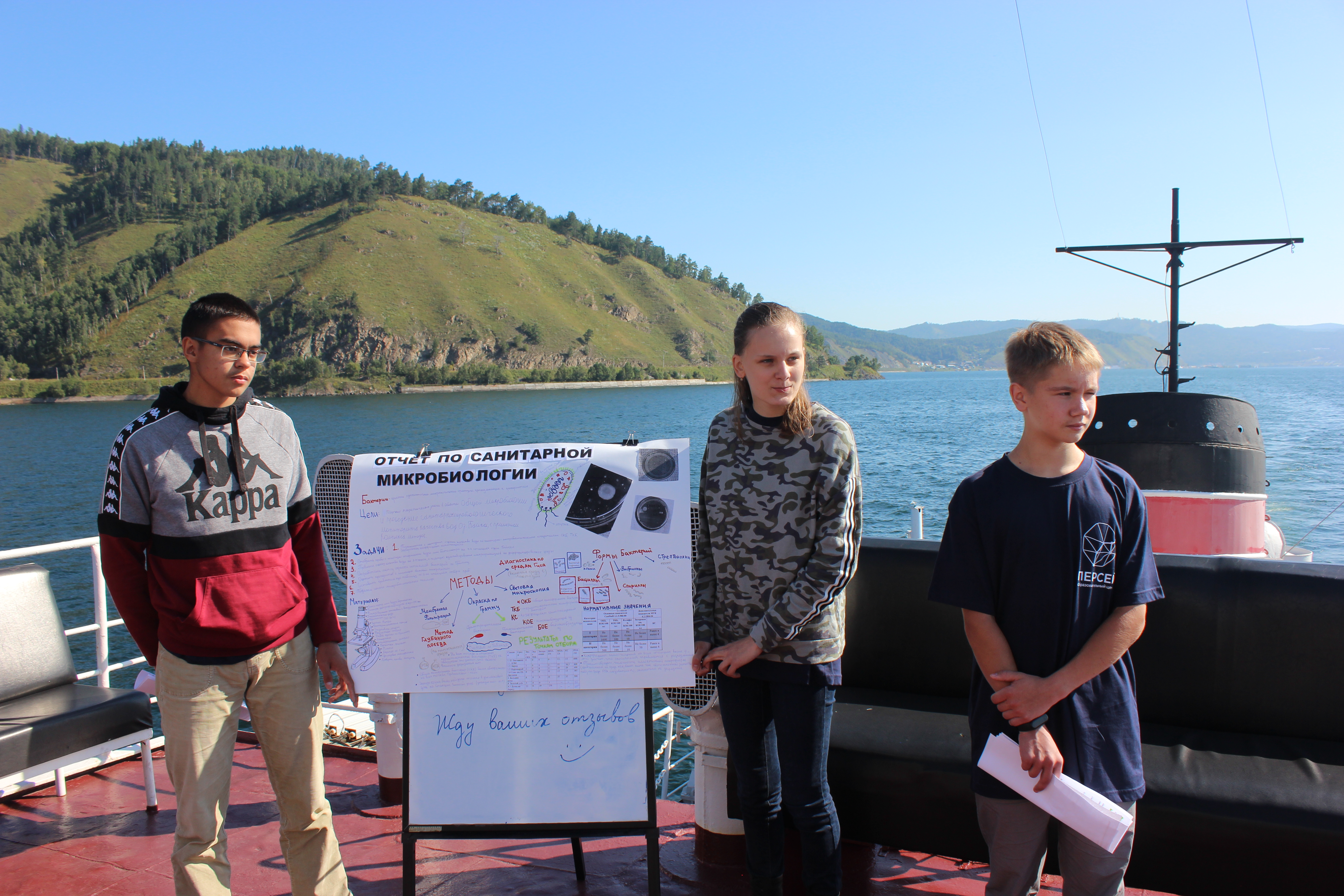 Завершающий день научно-образовательной экспедиции начался с представления участниками отчетов по трем темам: «Санитарная микробиология» под руководством к.б.н. Сухановой Елены Викторовны, «Зоопланктон» под руководством к.б.н. Майор Татьяны Юрьевны и «Методы изучения видового разнообразия» под руководством к.б.н. Майковой Ольги Олеговны и асп. Яхненко Алены Сергеевны. Защита отчетов проходила на палубе научно-исследовательского судна «Академик Коптюг», на фоне красивейшей природы озера Байкал! После этого ОЦ «Персей» вручил участникам экспедиции Сертификаты о том, что они прошли обучение по программе «Байкал — природная лаборатория» в рамках профильной смены. Сотрудники Лимнологического института вместе с директором Федотовым Андреем Петровичем попрощались с юными участниками экспедиции, пригласили их в Лимнологический институт для дальнейшего совместного учебного процесса и пожелали видеть их в дальнейшем в институте и в качестве студентов и аспирантов. Все участники этой экспедиции пожелали, чтобы такой проект стал ежегодным!