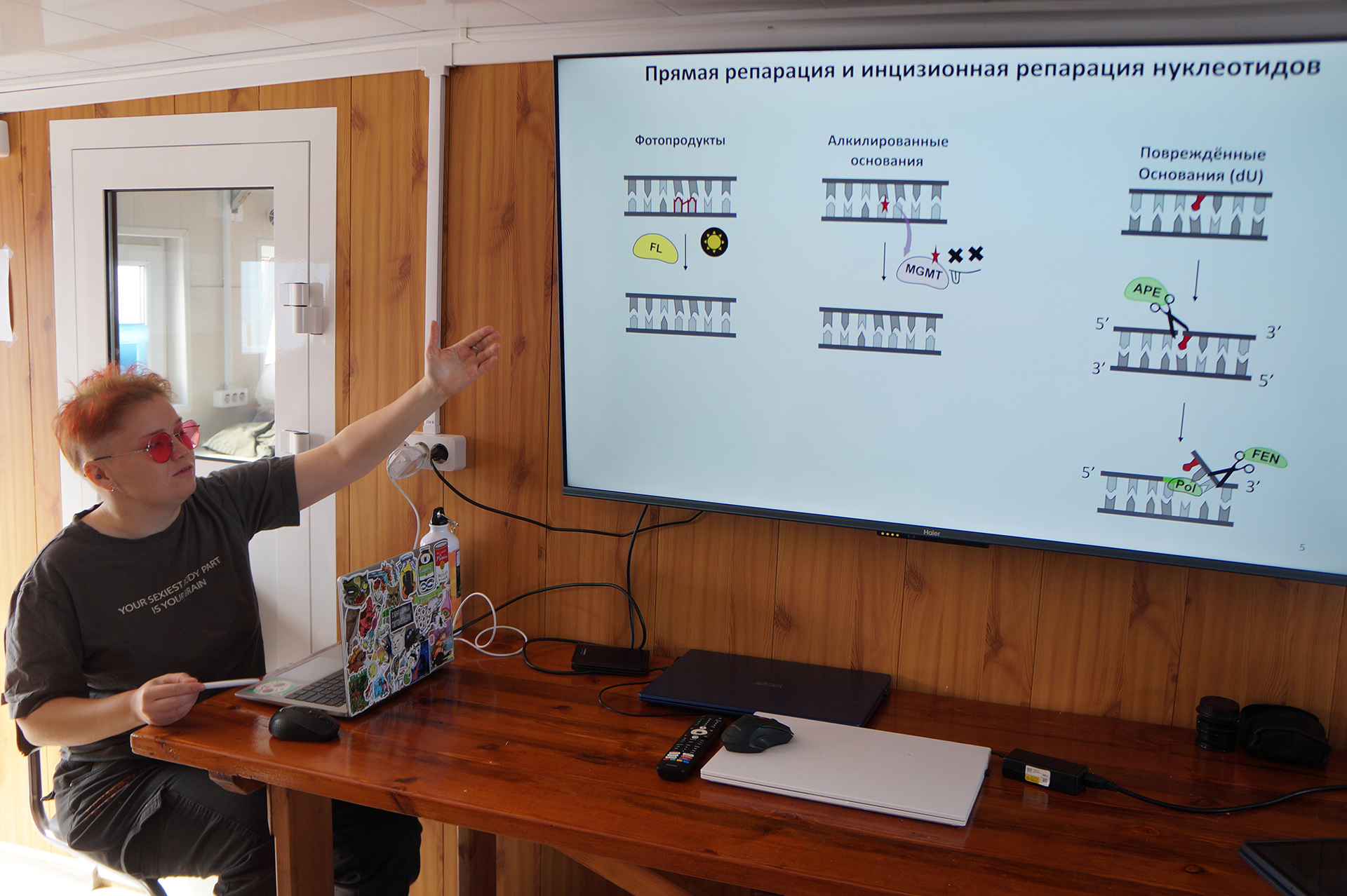 После этого Т.А. Кургина прочитала лекцию "Система репарации ДНК как страж генома". Лекция охватывала механизмы репарации ДНК, методы их исследования, включая молекулярные и модельные организмы. Были обсуждены примеры гиперактивной репарации у голых землекопов (Heterocephalus glaber), способствующей их долголетию и устойчивости к раку. Лектор подчеркнула роль репарации в поддержании геномной стабильности и потенциал для разработки новых методов лечения.После этого Т.А. Кургина прочитала лекцию "Система репарации ДНК как страж генома". Лекция охватывала механизмы репарации ДНК, методы их исследования, включая молекулярные и модельные организмы. Были обсуждены примеры гиперактивной репарации у голых землекопов (Heterocephalus glaber), способствующей их долголетию и устойчивости к раку. Лектор подчеркнула роль репарации в поддержании геномной стабильности и потенциал для разработки новых методов лечения.